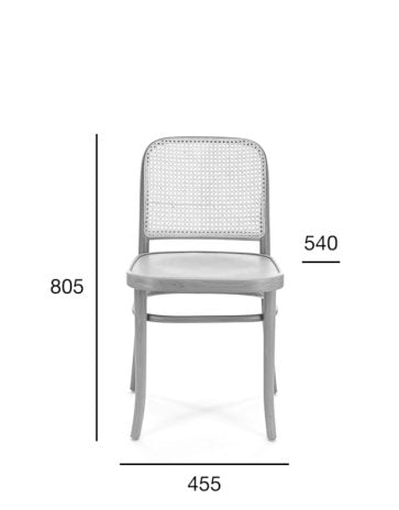 Model A-811/2 wyróżnia się wyplatanym, ażurowym oparciem w kolorze naturalnym (jasnym) oraz twardym siedziskiem. Krzesło dostępne jest również w innych wariantach – gładkim oraz tapicerowanym – co daje szerokie możliwości aranżacyjne. Jego lekka forma i szlachetne wykonanie z drewna bukowego czynią z niego mebel ponadczasowy, funkcjonalny i estetyczny.