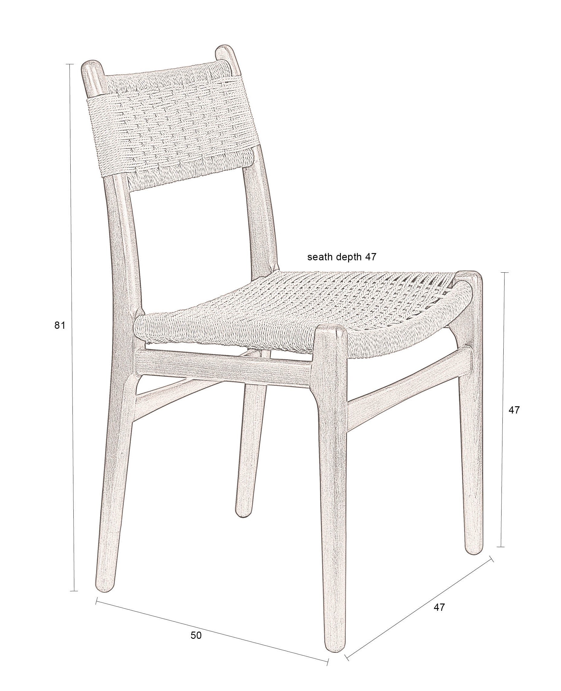 Wyjątkowe cechy krzesła Cecile to pięknie wykończona drewniana rama oraz przyciągające wzrok siedzisko i oparcie wykonane z plecionej liny. To połączenie nadaje krzesłu charakterystyczny wygląd, który natychmiast wypełnia pomieszczenie przyjemną atmosferą. Krzesło Cecile posiada wygodne siedzisko, które zapewnia komfort nawet podczas długich posiedzeń. Dodatkowo, krzesło to łatwo łączy się z innymi stylami mebli, nadając wnętrzu ciepły wygląd z nutą vintage.