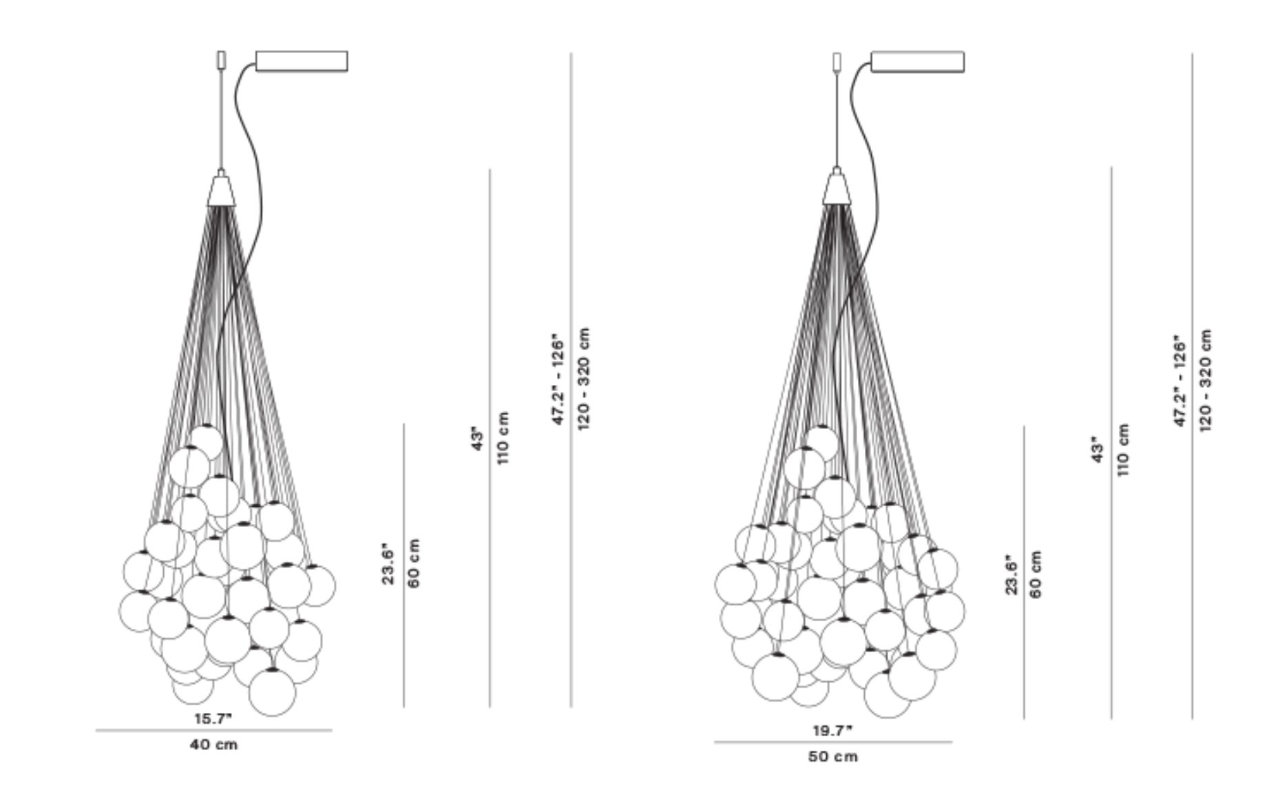 Długość całości zawieszenia: 120 - 320 cm