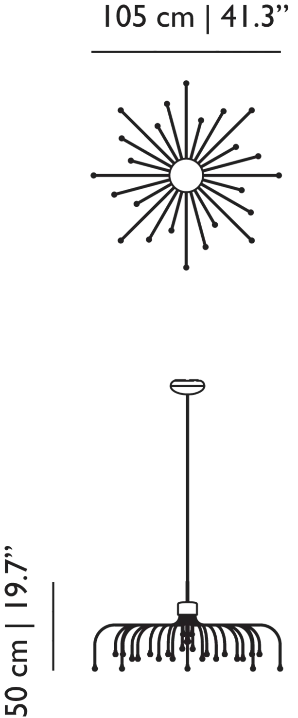 Żyj pod gwiazdami z lampą Starfall Light od Front! Starfall Light to okrągła lampa wisząca z nowoczesnym akcentem. Wyposażona w 30 źródeł światła LED wnosi do Twojego domu wieczny deszcz gwiazd. Dzięki 30 smukłym ramionom o różnych długościach, lampa nie tylko przypomina spadające gwiazdy, ale również gwiaździste niebo z punktami światła na różnych wysokościach. Nowa konstelacja czekająca na odkrycie!
