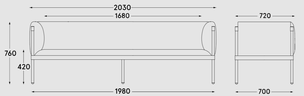 Die auf feste Spanplatten basierende Struktur stabilisiert die Rückenlehne und die Armlehnen, die eine halbprivate Zone für das Sitzen erzeugen. Hohe Beine erleichtern nicht nur das Sitzen und Aufstehen, sondern schützen den Boden auch dank Plastikfüßen vor Kratzern. Durch das elegante Finish der Rückseite des Sofas können Sie auf die Brennpunkte des Raums gesetzt werden, was dem Raum einen modernen Charakter verleiht.
