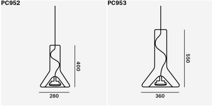 Lampe hängen Pfeifen, inspiriert vom Emaille -Werkzeug - ein in Tschechisch als glasender Pfeif bekanntes Gebläse ist durch eine transparente Form gekennzeichnet, die einen leichten Kegel bildet. Der Brennpunkt der Lampe ist ein klares Scheinwerfer mit handgepresster Metallabdeckung, und seine einfache technische Form wird durch ein nacktes Kabel hervorgehoben, das sich aufsetzt.