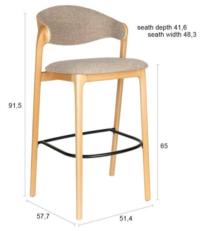 Eleganter Hocker Babington ist ein einzigartiges Möbelstück, das eine warme Atmosphäre und zeitlose Eleganz in Ihr Zuhause bringt. Inspiriert vom Stil der 50er Jahre, begeistert er mit einem soliden, hölzernen Gestell in natürlicher Ausführung, bei dem die Basis sanft in die Rückenlehne übergeht. Dies ist ein echtes Beispiel für handwerkliches Können, bei dem das natürliche Holz schön mit dem hellen Bezug des Sitzes und der Rückenlehne kontrastiert. Das weiche Sitzkissen garantiert hohen Komfort, sodass der Hocker perfekt für gesellige Zusammenkünfte mit Ihren Liebsten geeignet ist.