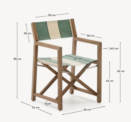 Vilara Green und beige externer Stuhl mit einer Akazienbasis