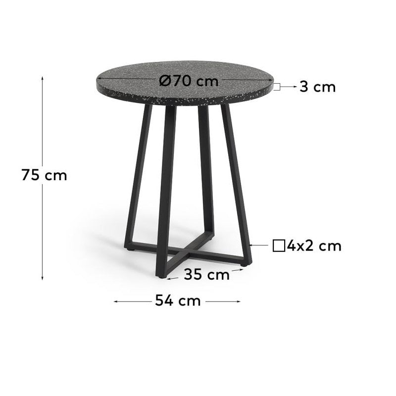 Runder Außentisch TELLA aus schwarzem Terrazzo mit schwarzem Gestell