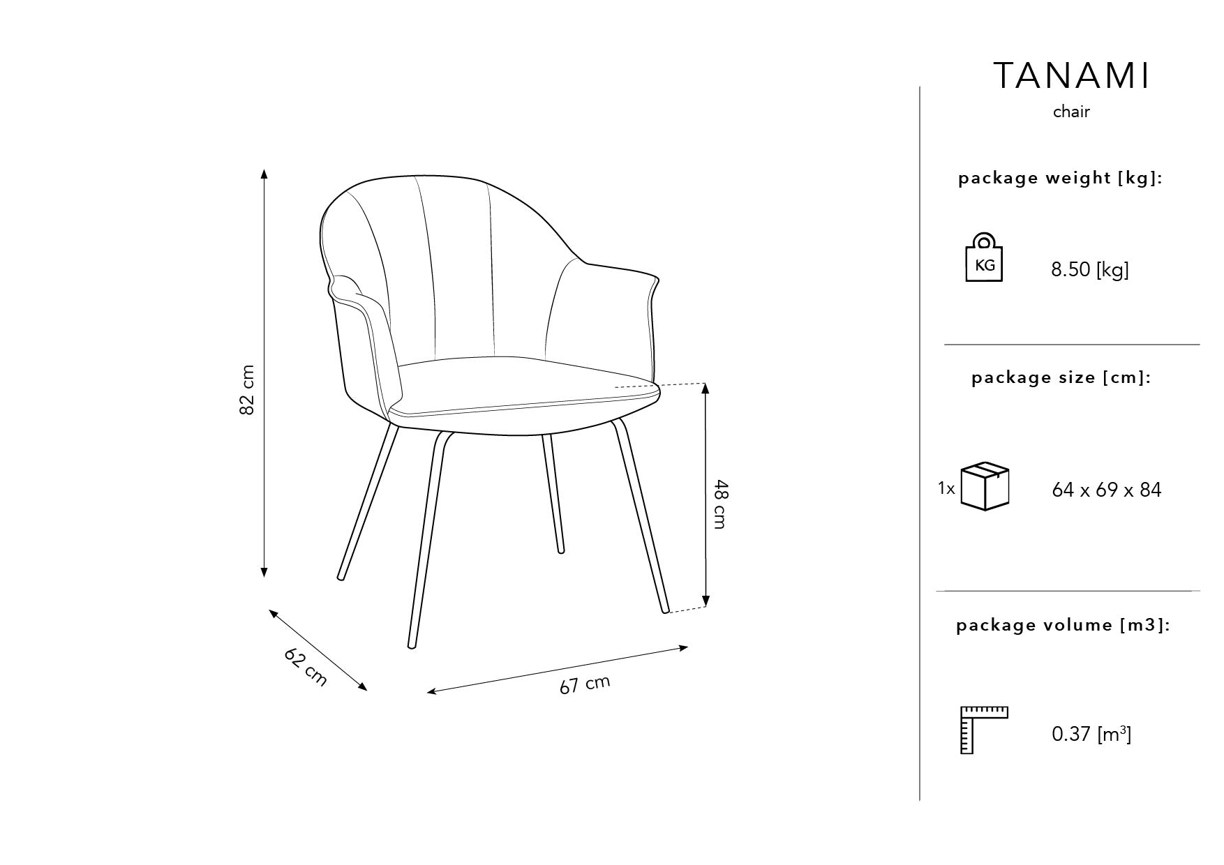 Tanami stilvoller Stuhl Kombinieren der Moderne und eines zeitlosen Geschmacks. Dies ist eine stilvolle Ergänzung, die nicht nur schön, sondern auch praktisch ist. Er war mit angenehmem Berührungsmaterial bedeckt, der Samt ähnelte, dessen sanfter Glanz Aufmerksamkeit erregt. Die Polsterung sieht besonders aus und ist gleichzeitig resistent gegen Abrieb.