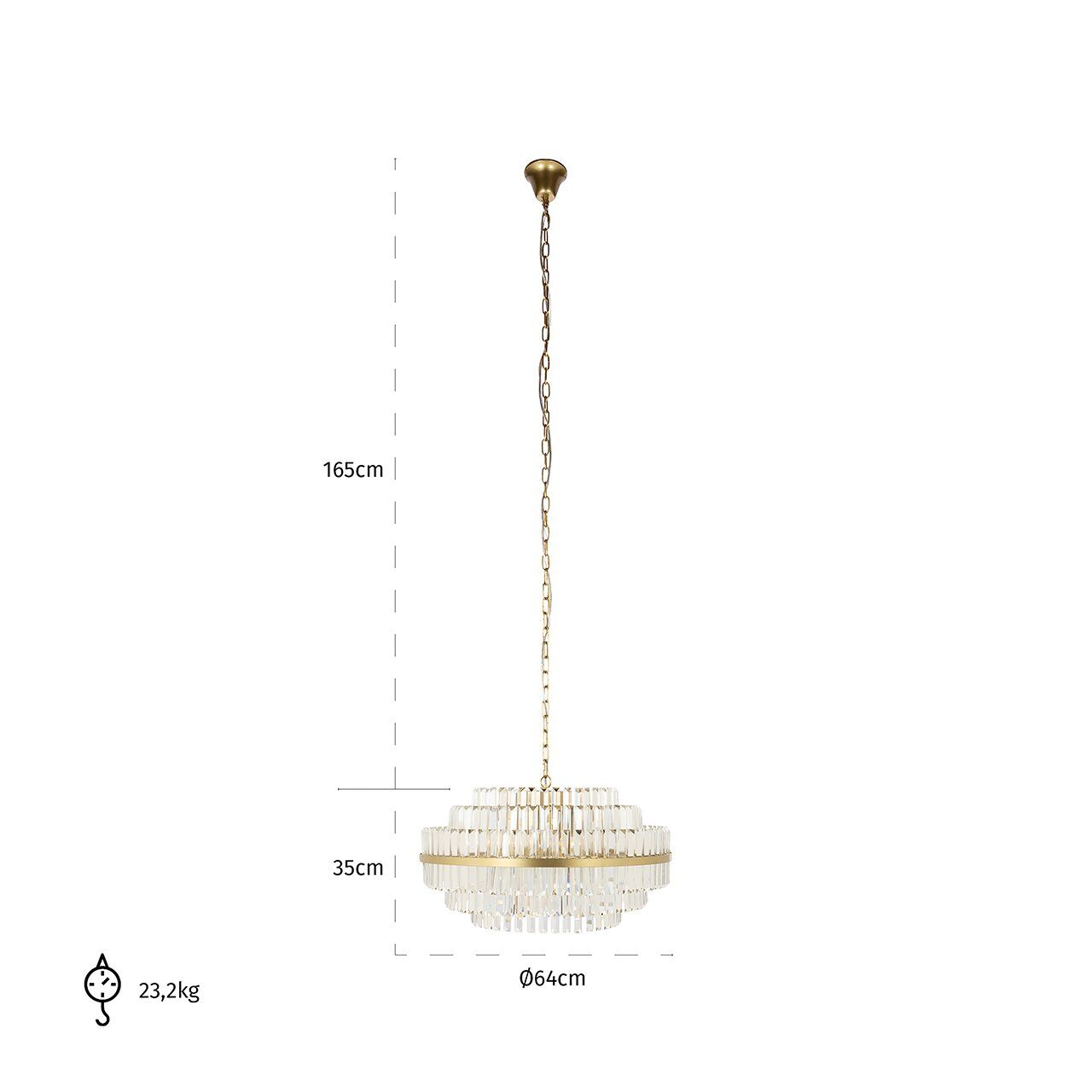 Lampe hängen Das Verlangen wird zweifellos zum Schwerpunkt der Aufmerksamkeit in Ihrem Innenraum. Diese Lampe ist ausschließlich aus Messing (Stahl in mattem Gold) hergestellt und mit effektiven Kristallen dekoriert und bietet nicht nur Licht, sondern auch einen zusätzlichen Glanz und Eleganz zu Ihrem Zuhause.