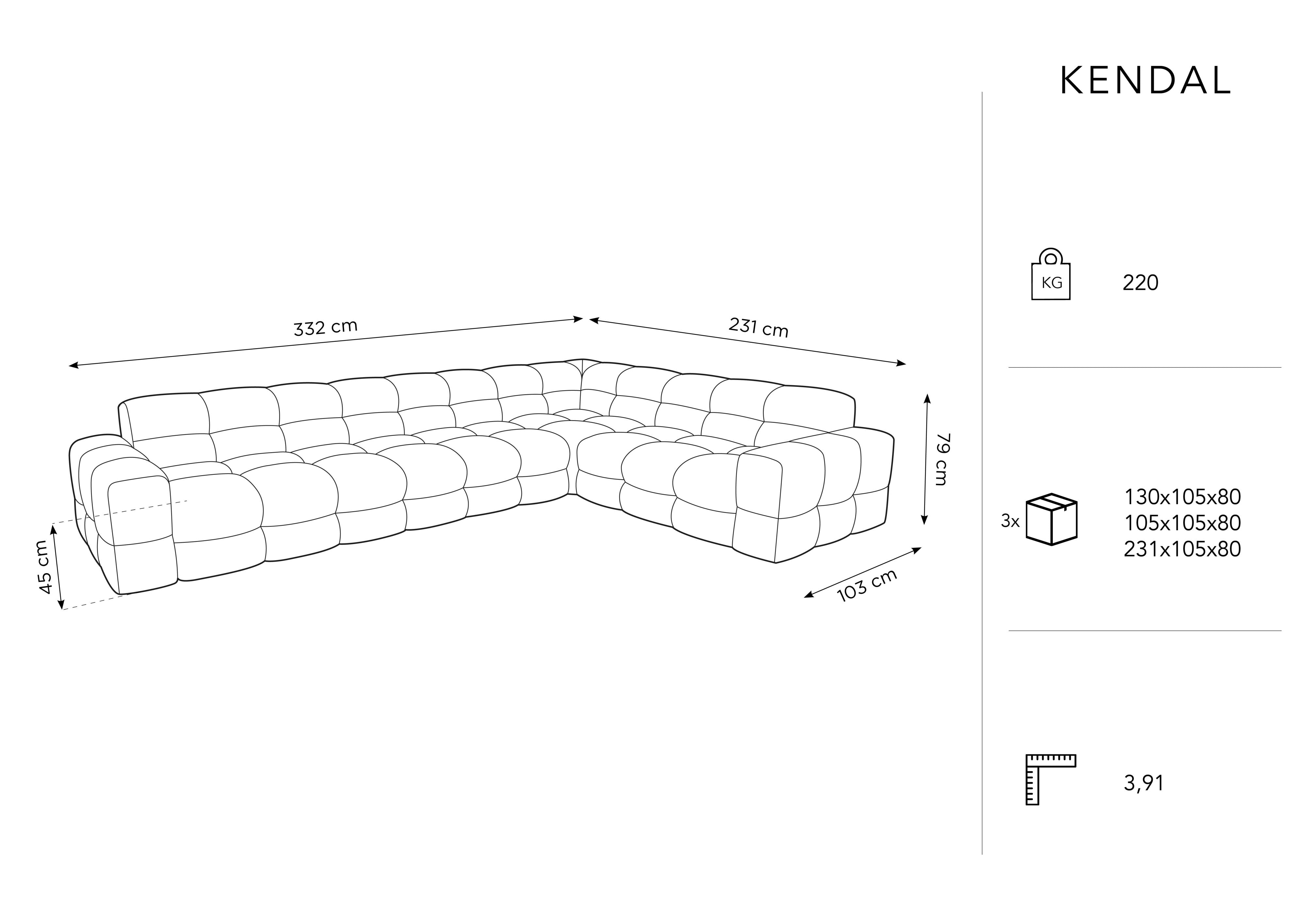 Narożnik prawostronny 6-osobowy KENDAL jasnoszary Micadoni    Eye on Design