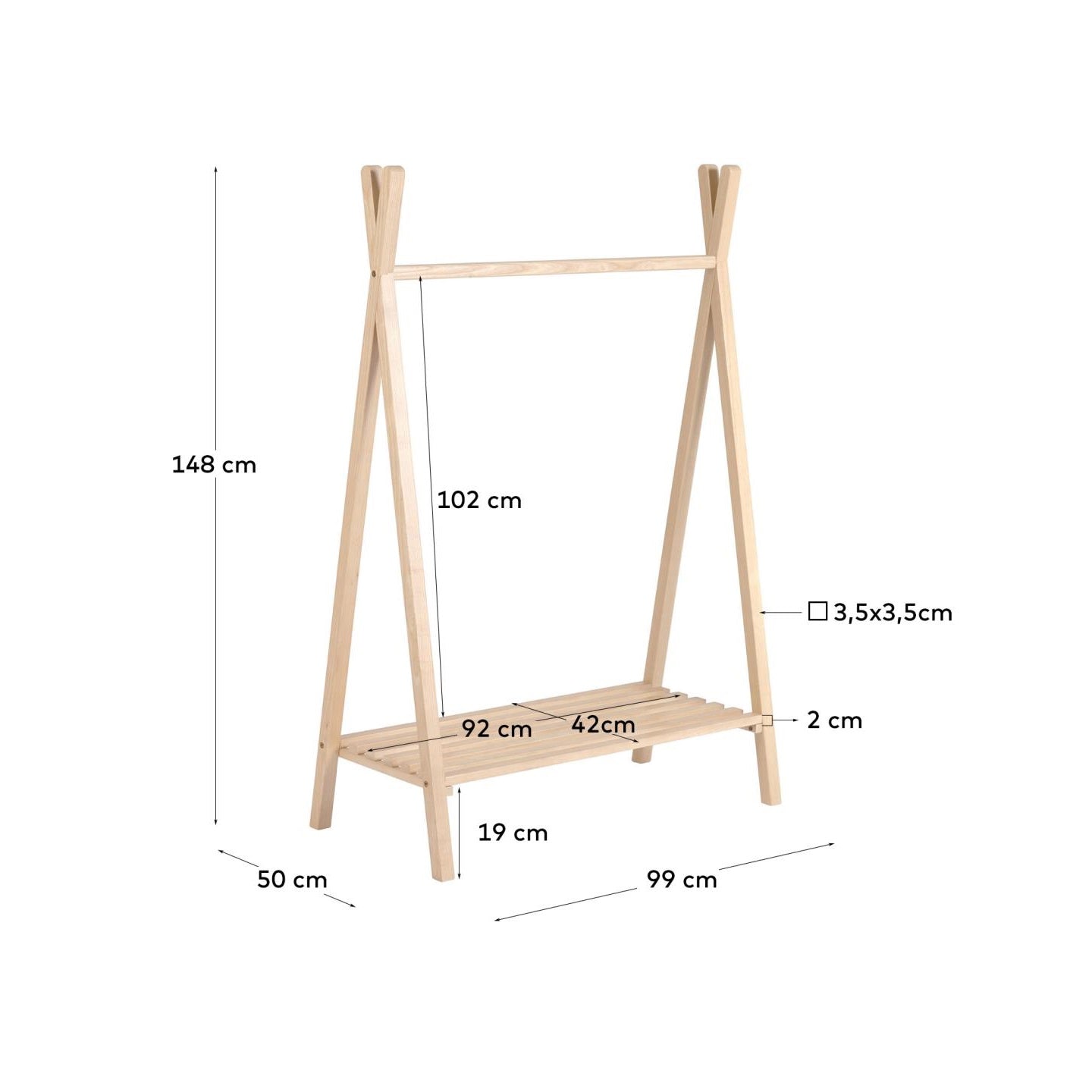 Dekorativ und funktional, diese einzigartig Kinderbügel Tipi aus massivem Eschenholz ist eine perfekte Lösung für ein Kinderzimmer. Es erfüllt nicht nur die praktische Rolle des Speicherns von Kleidung, sondern fungiert auch als Element, das die Aufrechterhaltung der Ordnung im Raum unterstützt und die Fähigkeit entwickelt, sich um Ihre eigenen Dinge zu kümmern.