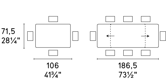 Die Tischplatte und 2 Schubladenerweiterungen an den Seiten passen sich automatisch an und bestehen aus geschmittertem Glas. Die Basisstruktur aus elliptischer Rohrmetall passt zur Tischplatte. Multifunktional und leicht zu transformieren, dieses eine Tisch Dakota wird sich sofort an jede Umgebung anpassen und dem modernen Lebensstil entspricht.