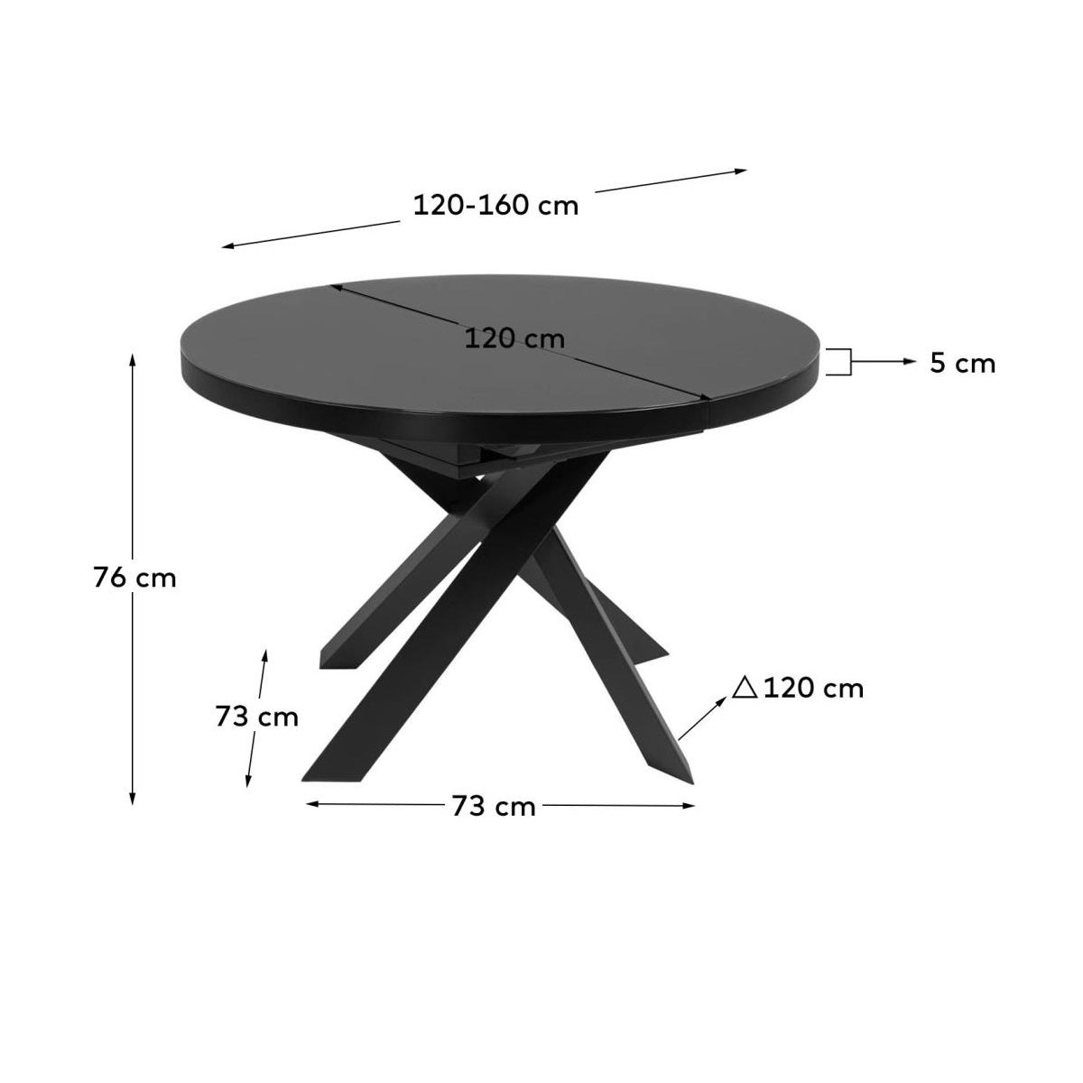 Stół rozkładany okrągły VASHTI szklany blat z czarną podstawą La Forma    Eye on Design