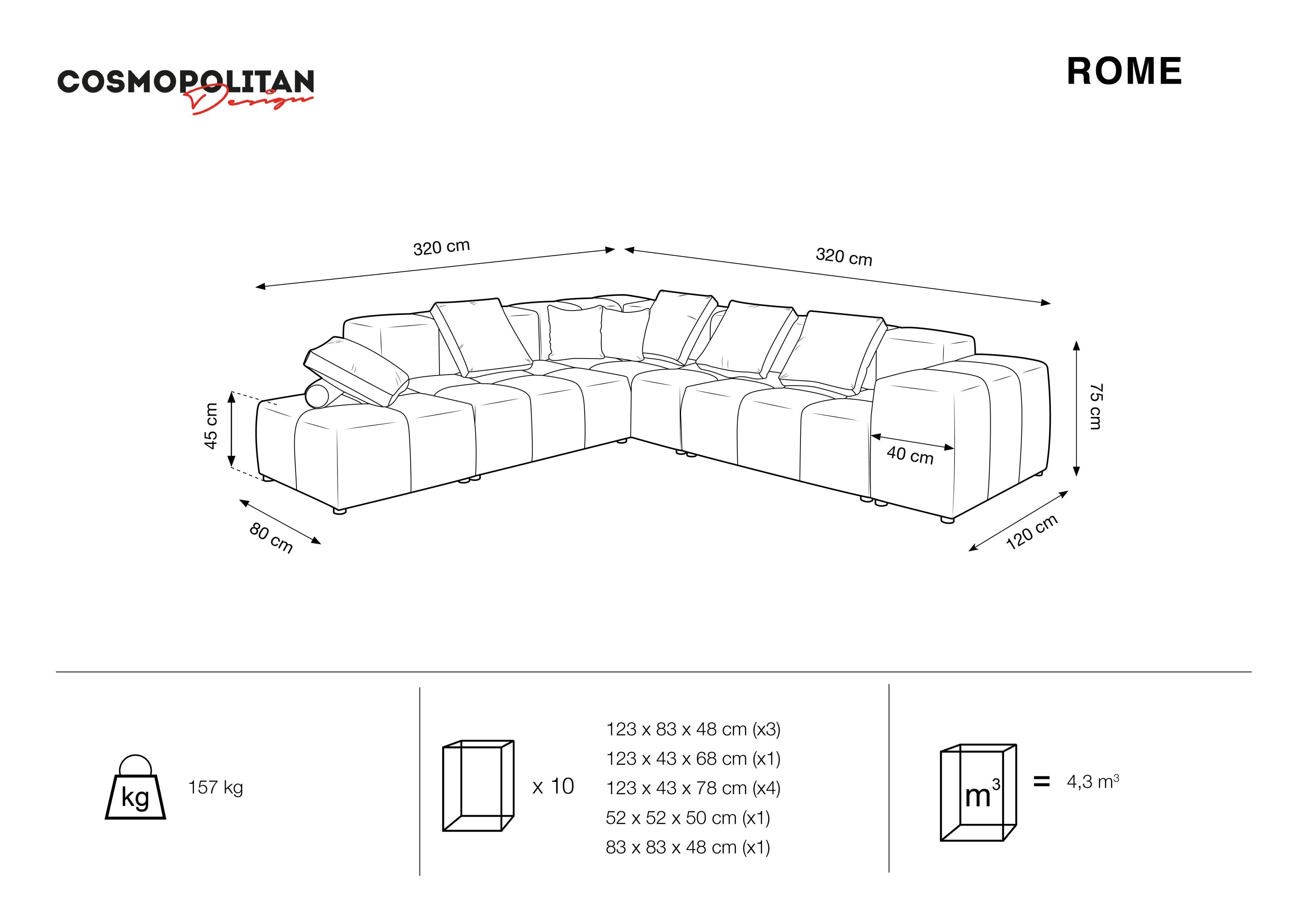 Narożnik modułowy aksamitny duży 5-osobowy ROME beżowy Cosmopolitan Design    Eye on Design