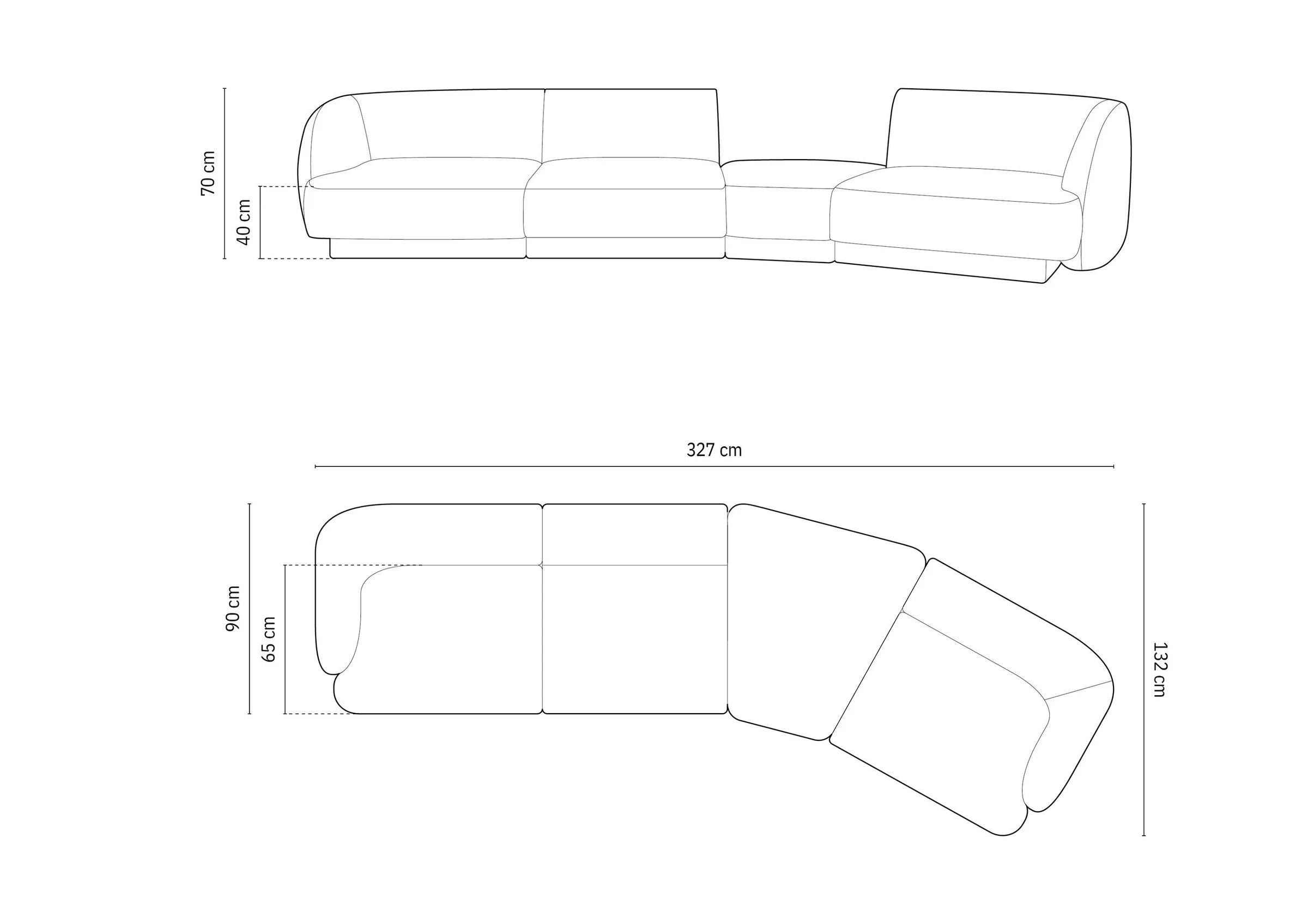 Modularsofa rechtsseitig für 6 Personen MILEY graues Chenille seidig