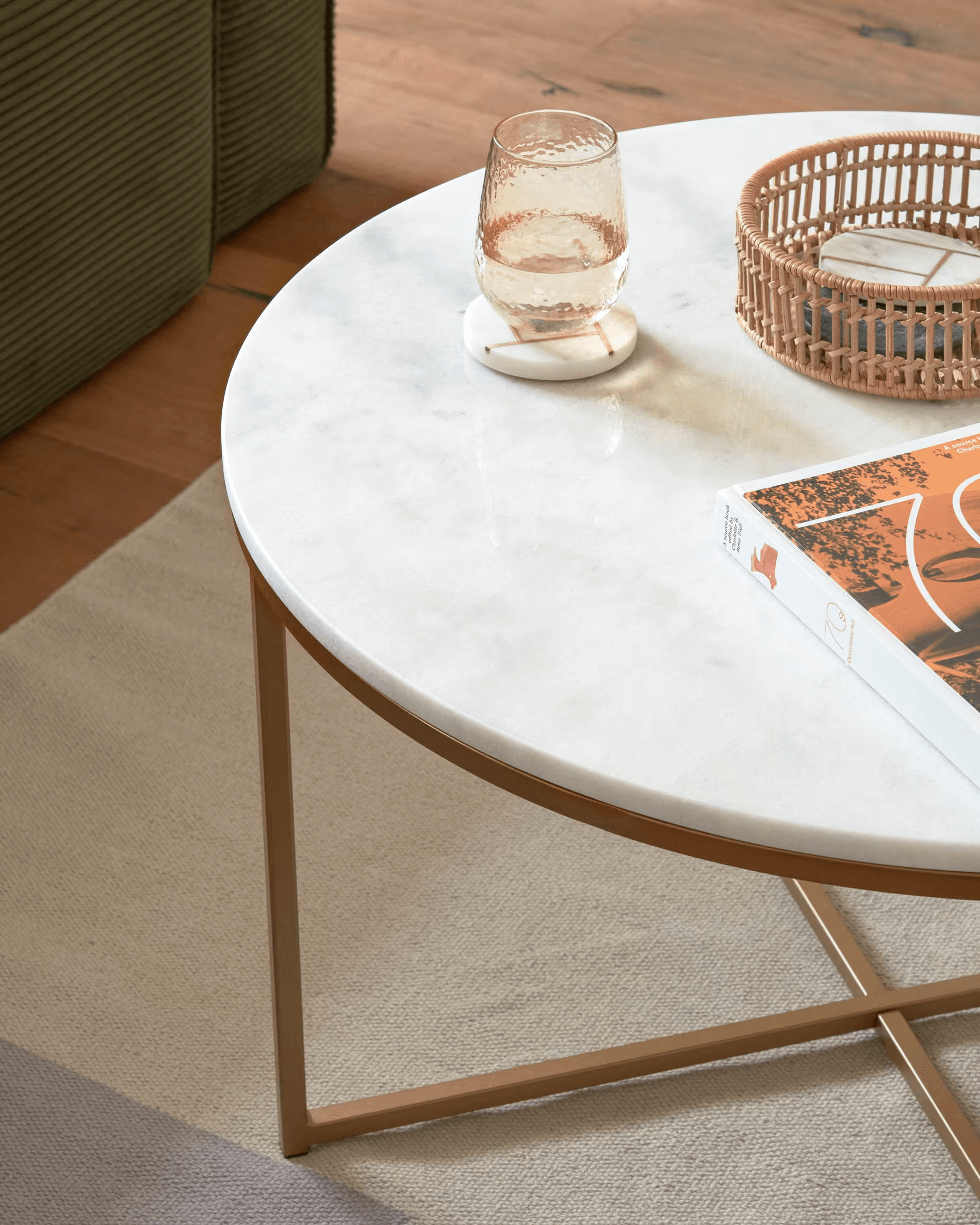 Stolik kawowy SHEFFIELD biały marmur ze złotą podstawą La Forma    Eye on Design