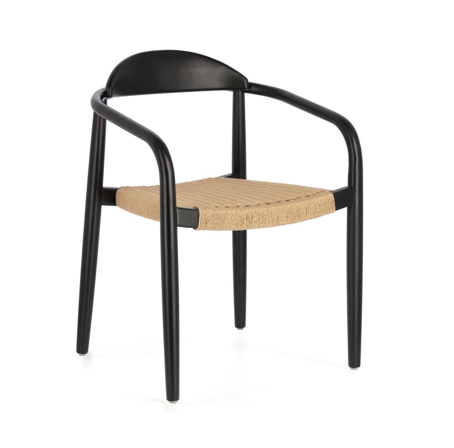 Stuhl Nina Black Acacia Wood mit einem beige Seil