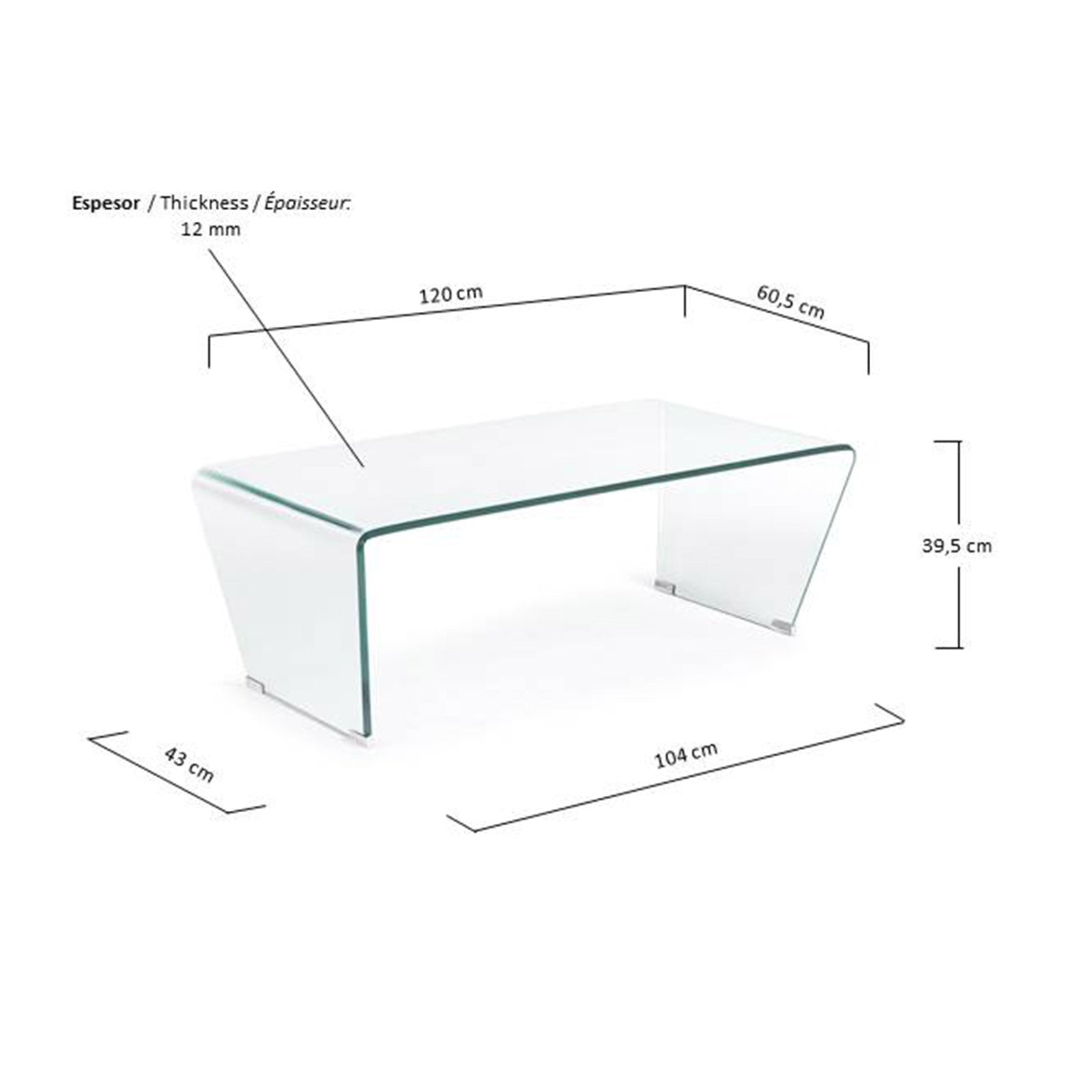 Stolik kawowy z zaokrągleniami BURANO przezroczyste szkło La Forma    Eye on Design