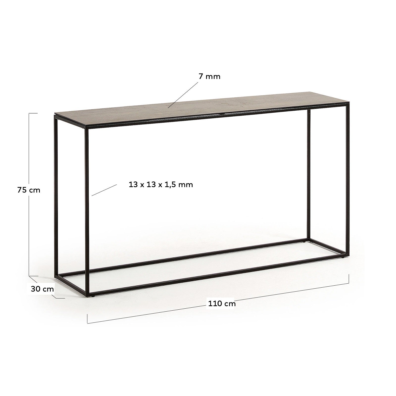 Keramikoberteil braune Konsole Rewena ist ein Symbol für einen anspruchsvollen Geschmack und Ästhetik. Die Auswahl dieses exklusiven Materials verleiht dem Raum einen einzigartigen Charakter und erzeugt eine langlebige und leicht zu pflegende Oberfläche. Solid struktureller Stahl ist nicht nur die Basis, sondern auch ein subtiler Kontrast, wodurch ein Gleichgewicht zwischen Moderne und Solidität entsteht.