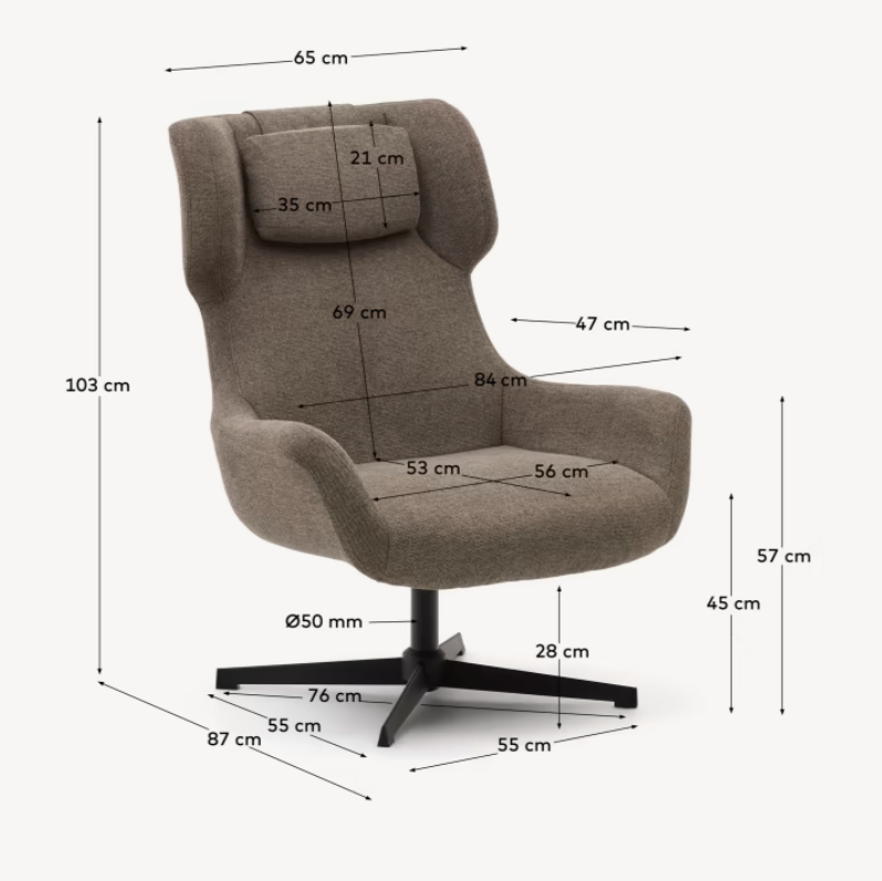 Schwenken Der Mühle ist ein Meisterwerk des modernen Designs, das der unbestrittene Held Ihres Salons wird. Die stark gestalteten Armlehnen und die Kopfstütze verleihen diesen einzigartigen Möbeln Eleganz und Komfort und schaffen einen Entspannungsraum eines einzigartigen Charakters.