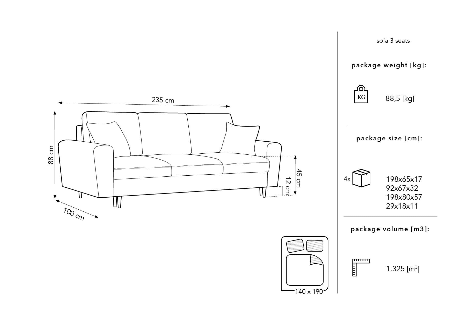 Sofa z funkcją spania KYOTO beżowy z czarną podstawą Cosmopolitan Design    Eye on Design