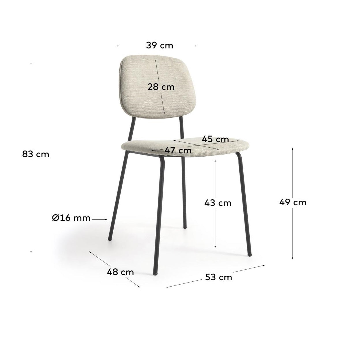Das Sperrholz zurück in der natürlichen Eiche gibt Designerstuhl Benilda Leichtigkeit und natürlicher Charme. Das Metalldesign mit einem matten Finish, das schwarz gemalt wurde, gewährleistet nicht nur Zuverlässigkeit und Haltbarkeit, sondern verleiht den Möbeln auch einen modernen und stilvollen Look.