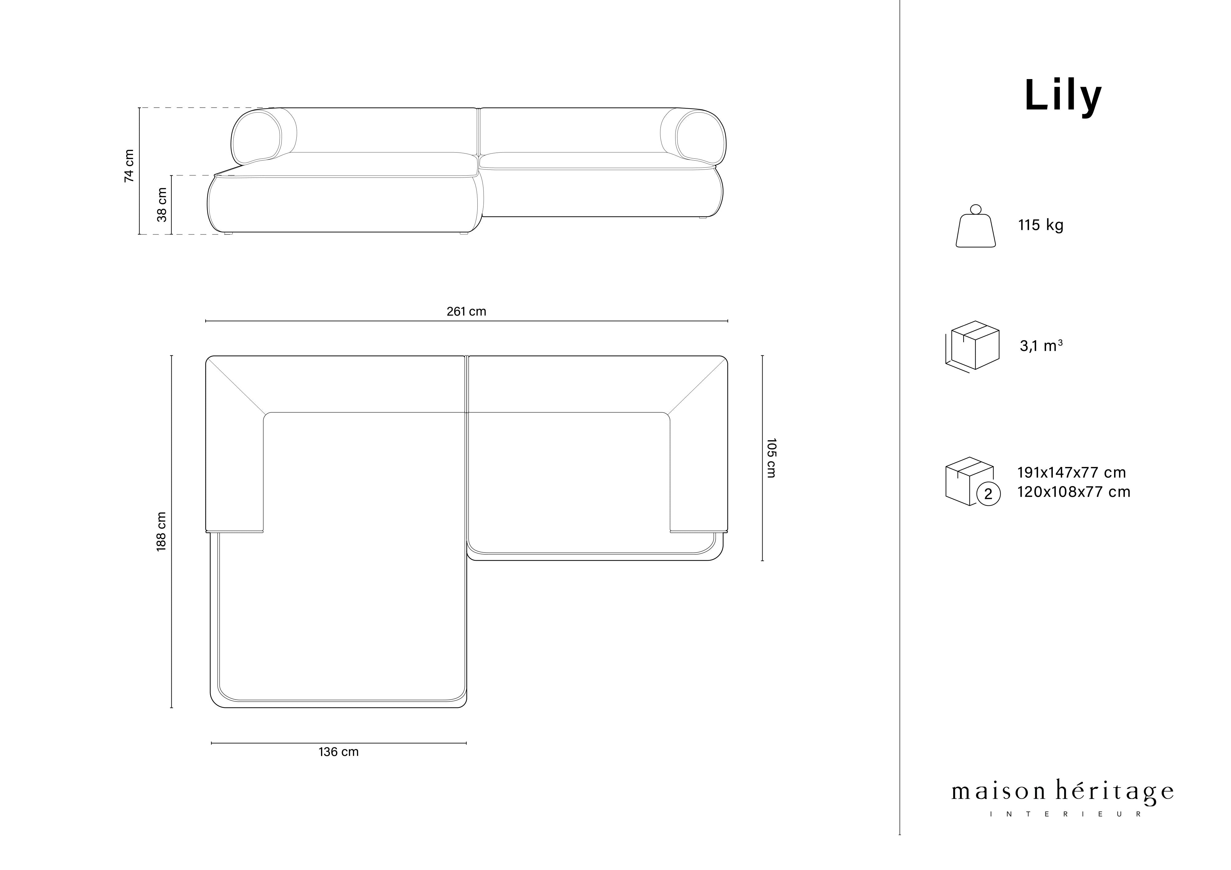 Narożnik w tkaninie szenilowej lewostronny LILY ciemnoniebieski Maison Heritage    Eye on Design