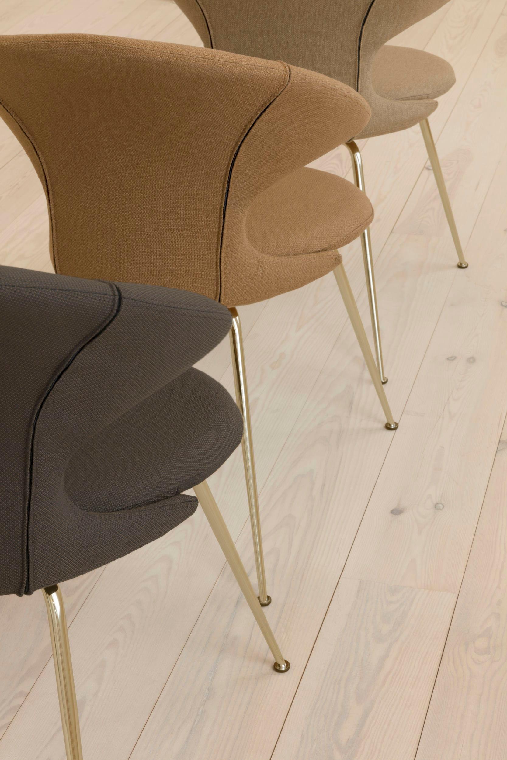 Stuhl Es ist in 17 sorgfältig ausgewählten Farben des Horizons erhältlich, was zu 100% recycelt ist oder in 2 Stoffen aus der Teddy -Sammlung. Darüber hinaus umfassen Beinoptionen Messing-, Chrom- oder Schwarze Oberflächen, mit denen Sie den Stuhl zu verschiedenen Innenstilen anpassen können. Diese Kombination aus Ästhetik, Funktionalität und einem ausgewogenen Materialansatz macht die Zeit zu einem einzigartigen und dauerhaften Satz.