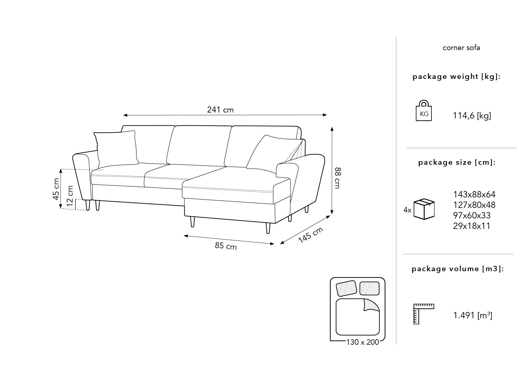 Narożnik prawostronny sztruksowy z funkcją spania KYOTO jasnoniebieski Cosmopolitan Design    Eye on Design