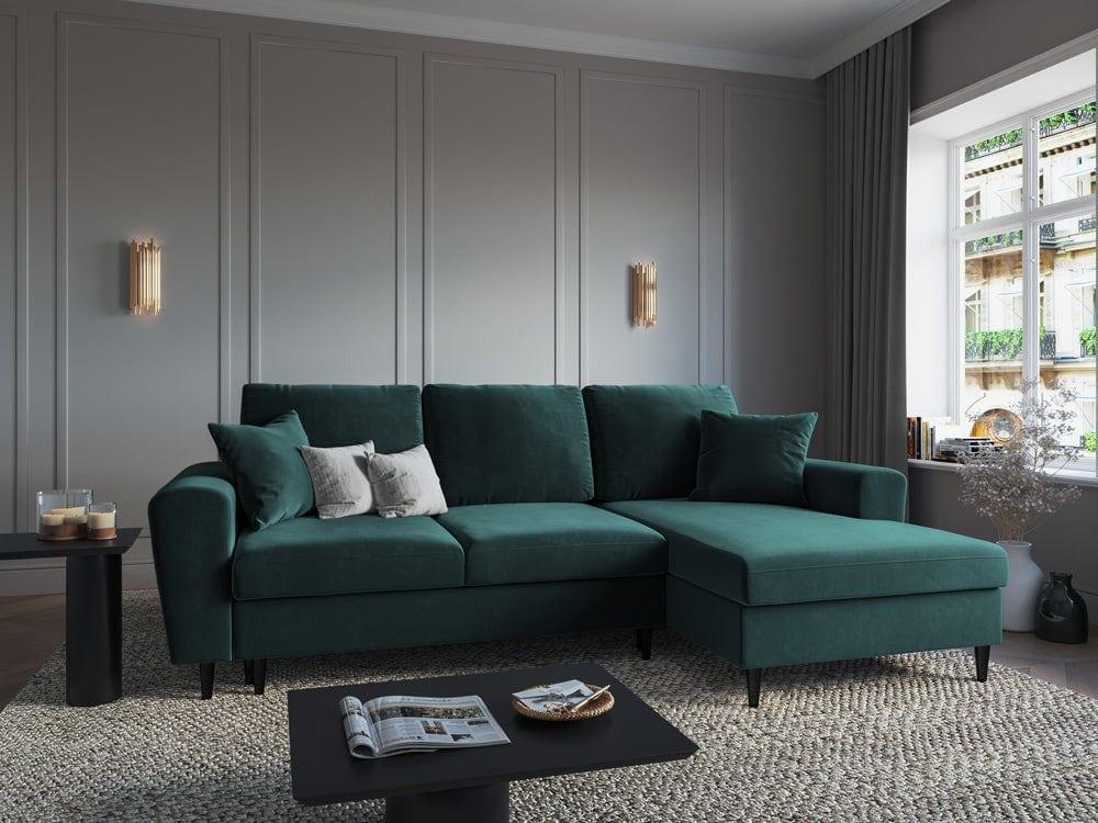 Narożnik prawostronny aksamitny z funkcją spania KYOTO petrol z czarną podstawą Cosmopolitan Design    Eye on Design