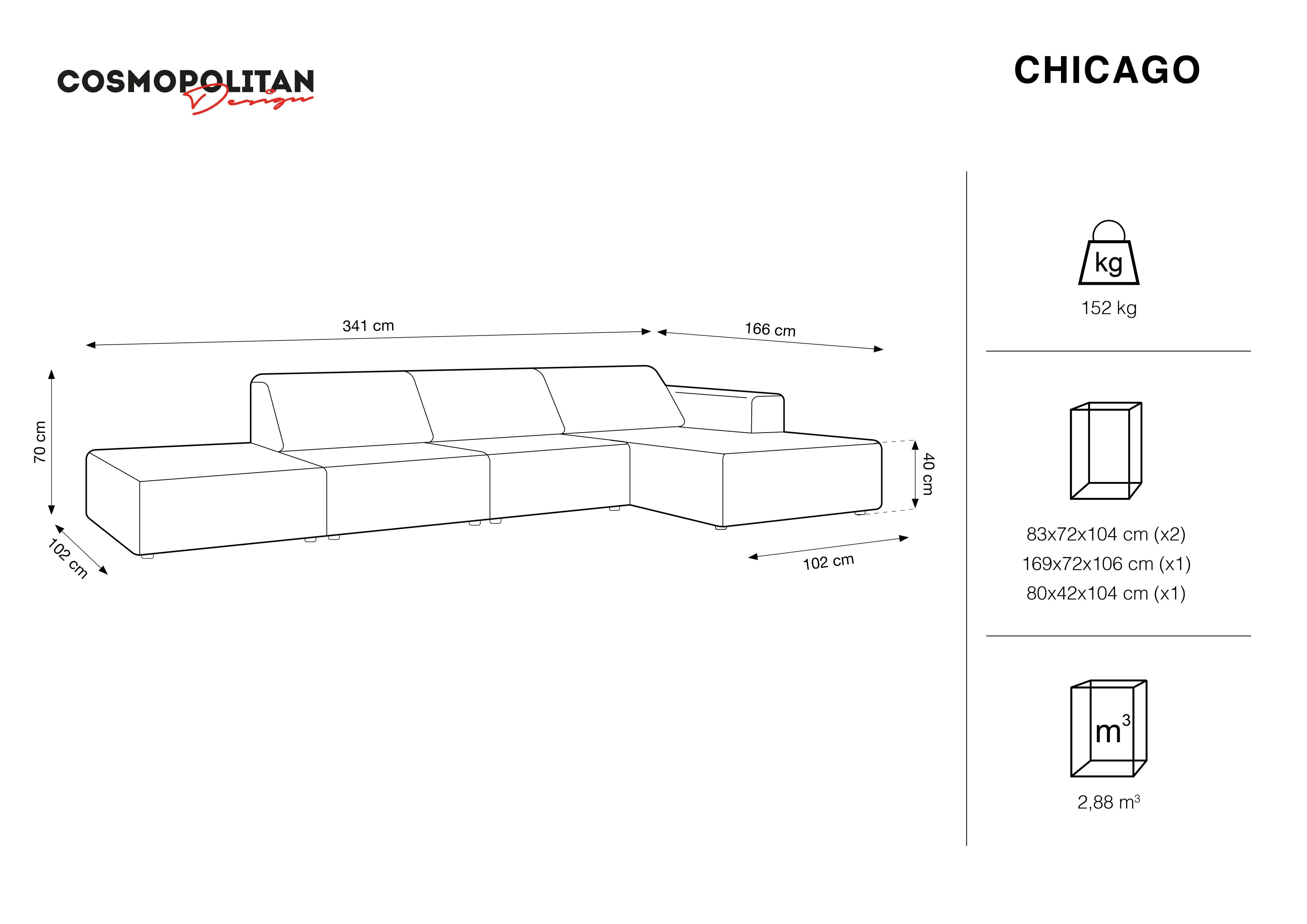 A corner for five people Chicago is characterized by a unique design, where gently quilted seats and numerous stitching on the backs give the whole sophisticated look. The low, extensive block emanates an extraordinary style, perfectly emphasizing the style of the living room. The elastic, deep seats with abundant filling guarantee not only comfort, but also full relaxation after a hard day.