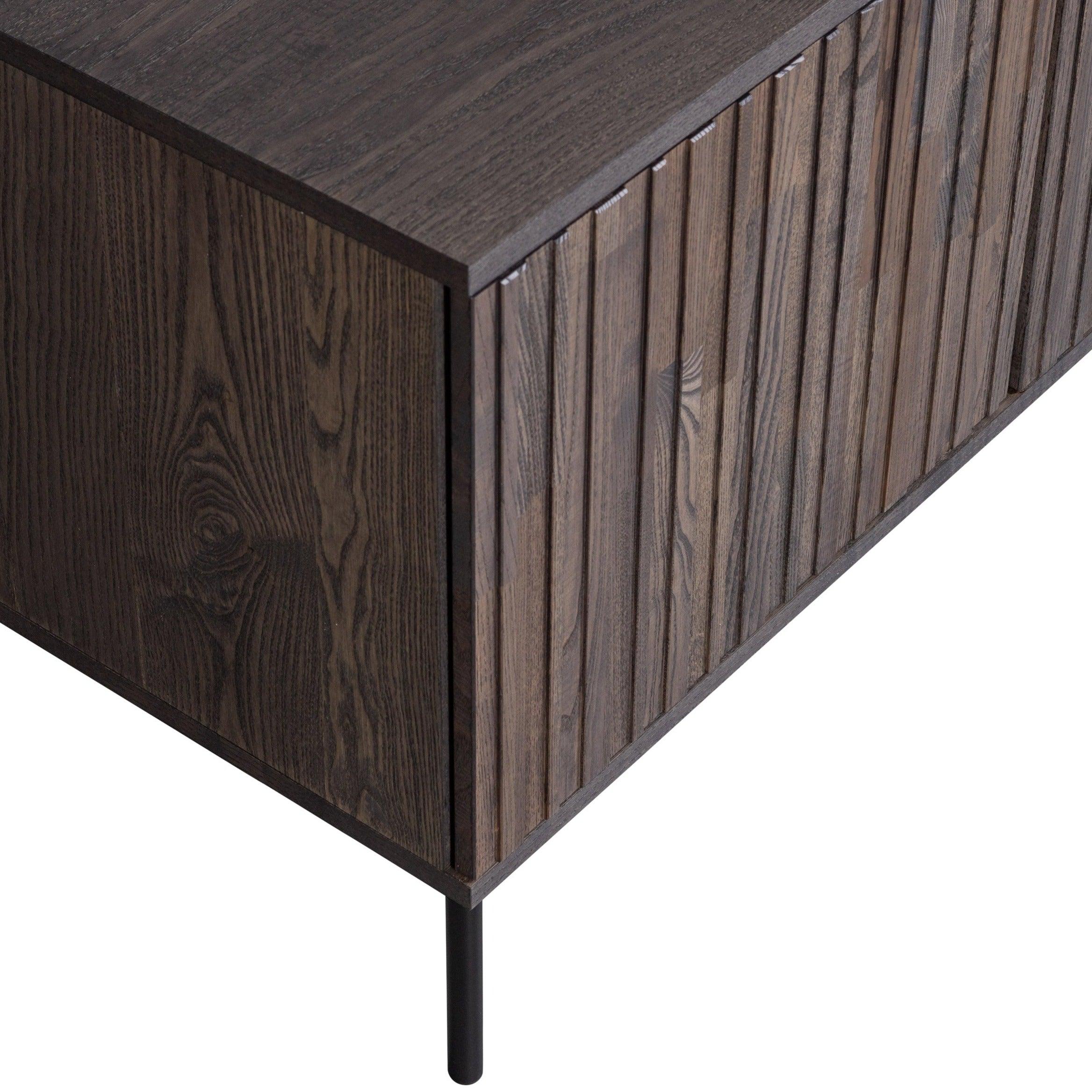 You dream of a functional one TV cabinet, which will not be just an ornament, but also a functional furniture? If so, the Gravure RTV cabinet will be the perfect choice. An elegant, though unforced finish in dark wood color and a perfectly planned layout of shelves makes it Wooden RTV cabinet Gravure is a perfect complement to almost any interior. The shelves provide additional storage space, while classic, minimalist fronts provide Gravure cabinet with a great look.