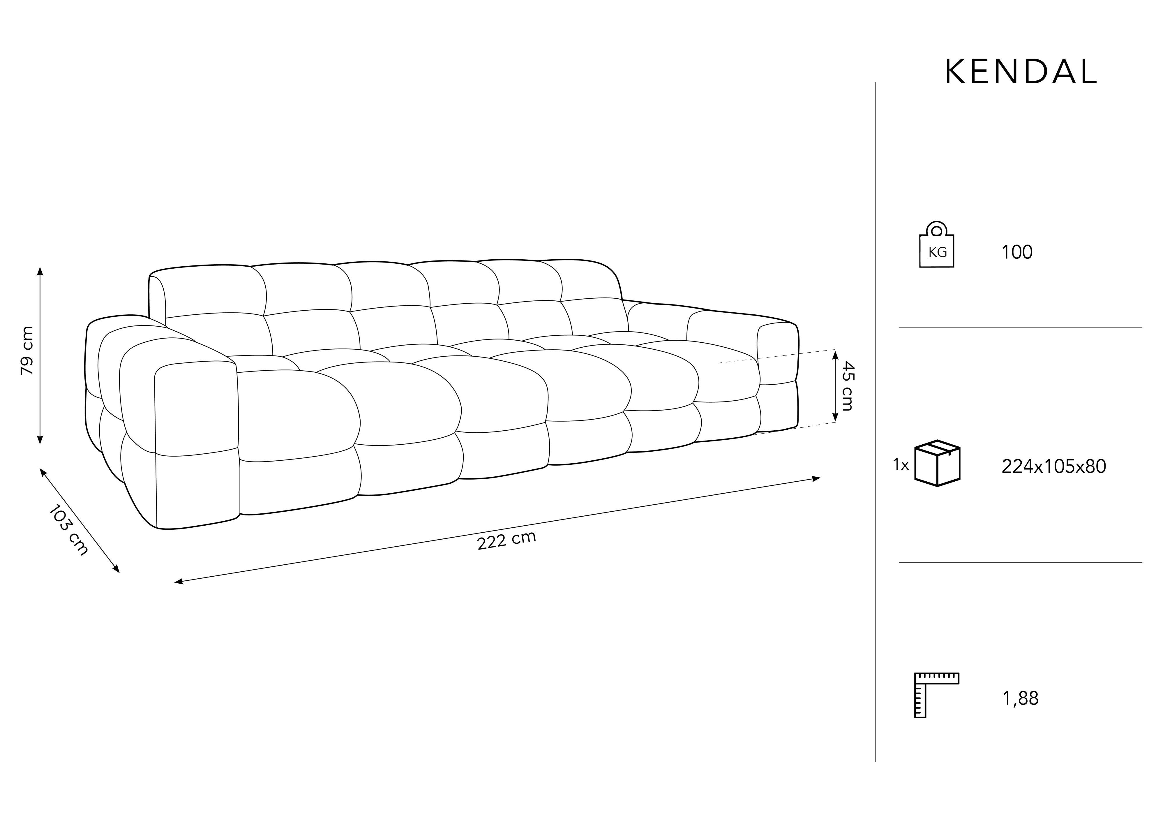 Sofa aksamitna 3-osobowa KENDAL jasnoszary Micadoni    Eye on Design