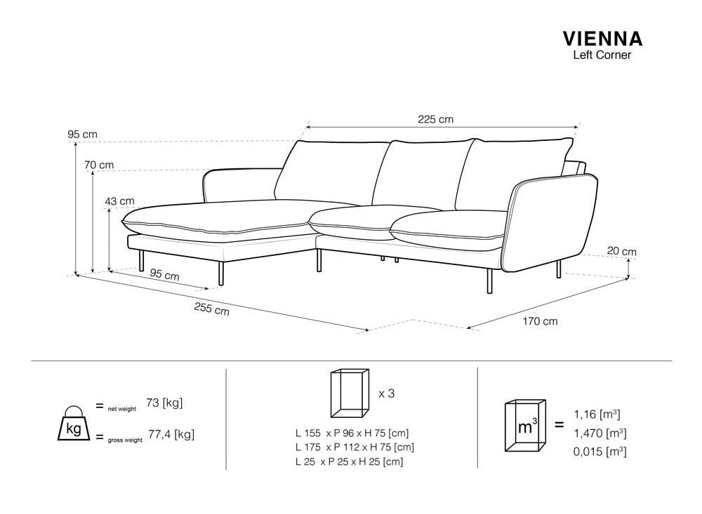 Right -hand velvet corner Vienna Jasnoszary with a golden base
