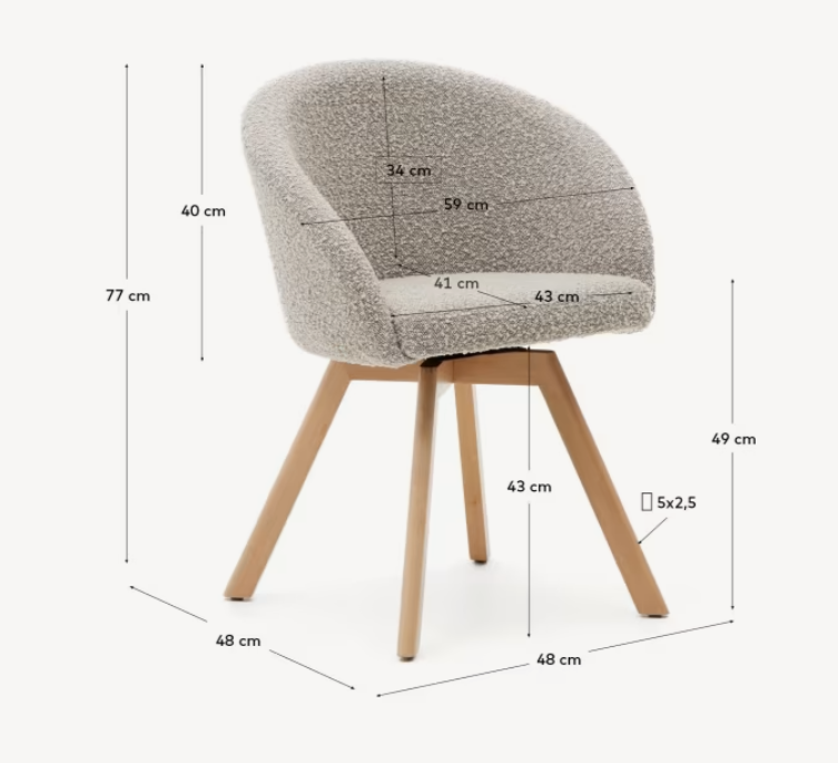 Marvin beige swivel chair with a wooden base