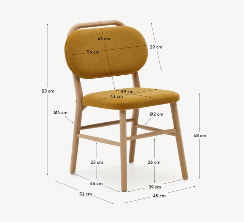 Krzesło HELDA musztardowy szenil z drewnianą podstawą La Forma    Eye on Design