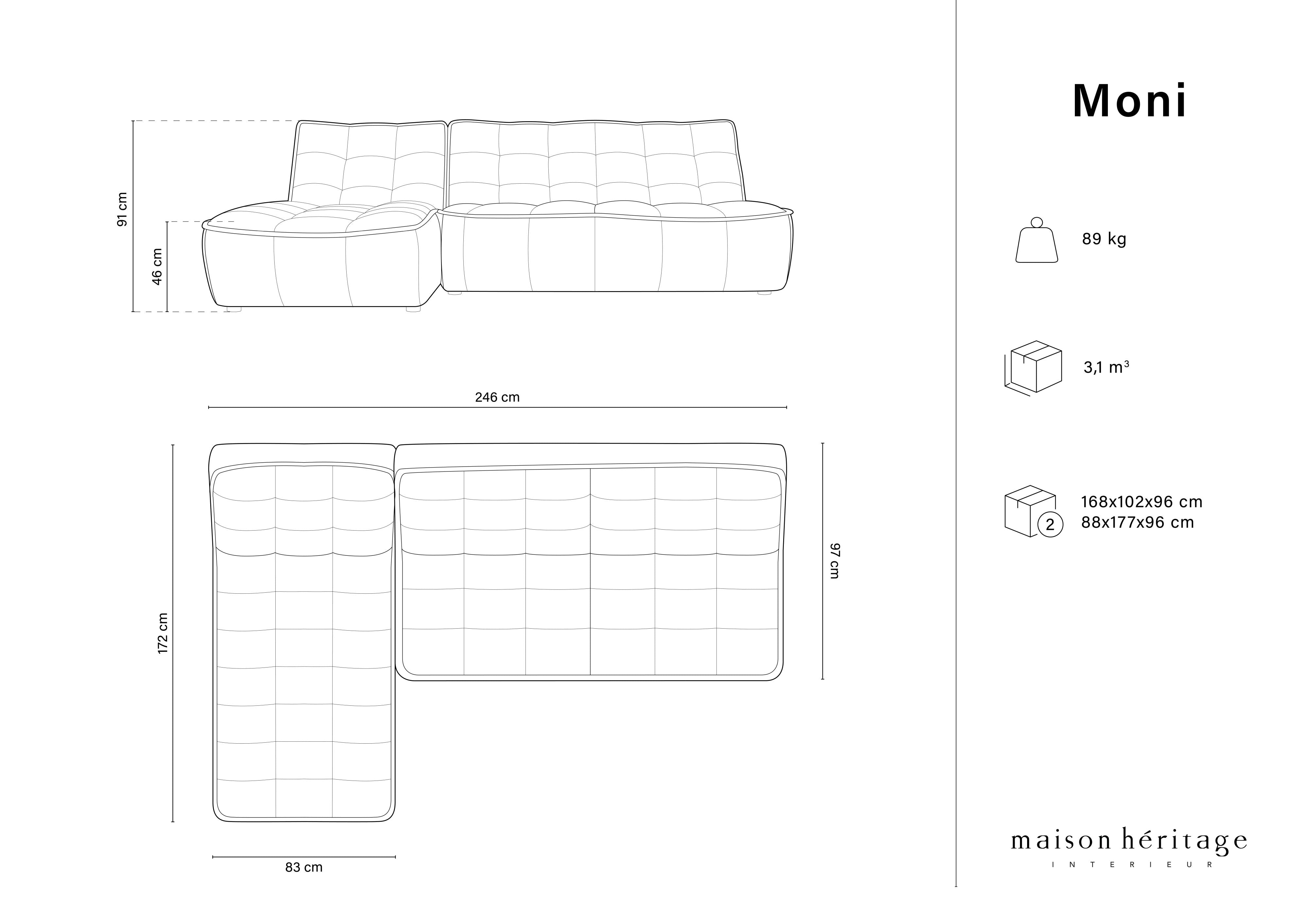 Leather corner for four people Moni defines functionality and convenience in combination with modern design. Stylish quilting and the original block are great for both an elegant living room and a modern office. The seat and back line is arched and has a slightly profiled cavity, offering extraordinary comfort of use.