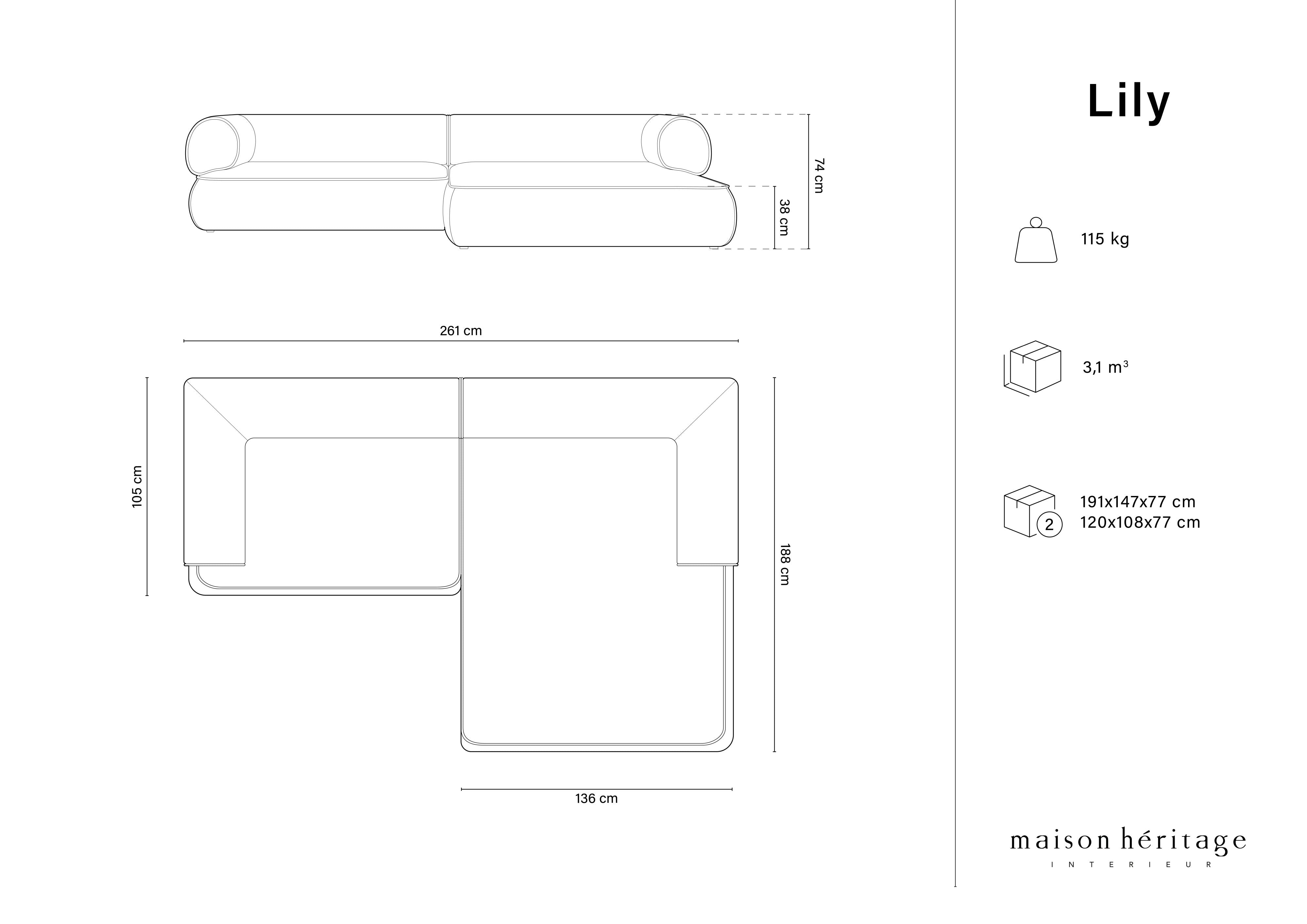 Narożnik skórzany prawostronny LILY czarny Maison Heritage    Eye on Design