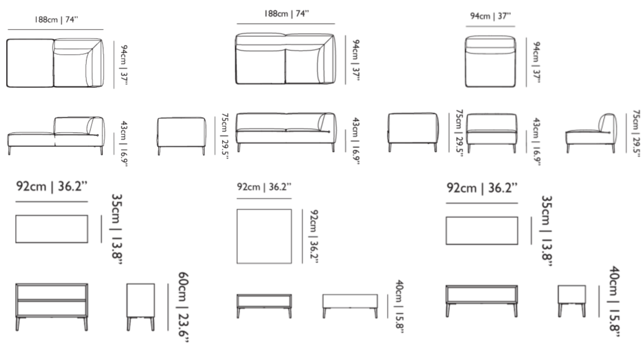 The sofa system includes eight different upholstered modules, two tables and three shelves. Tables and shelves are available in six different wood finishes. You can choose from an eclectic range of fabrics, including new colors from the Extinct Animals fabric collection. The SO GOOD sofa is infinitely versatile and is suitable for any interior. In our online configurator you create not only a sofa; You create a personal space adapted to your needs. The SO GOOD sofa is available in different colors and models, as well as in 507 different fabrics.