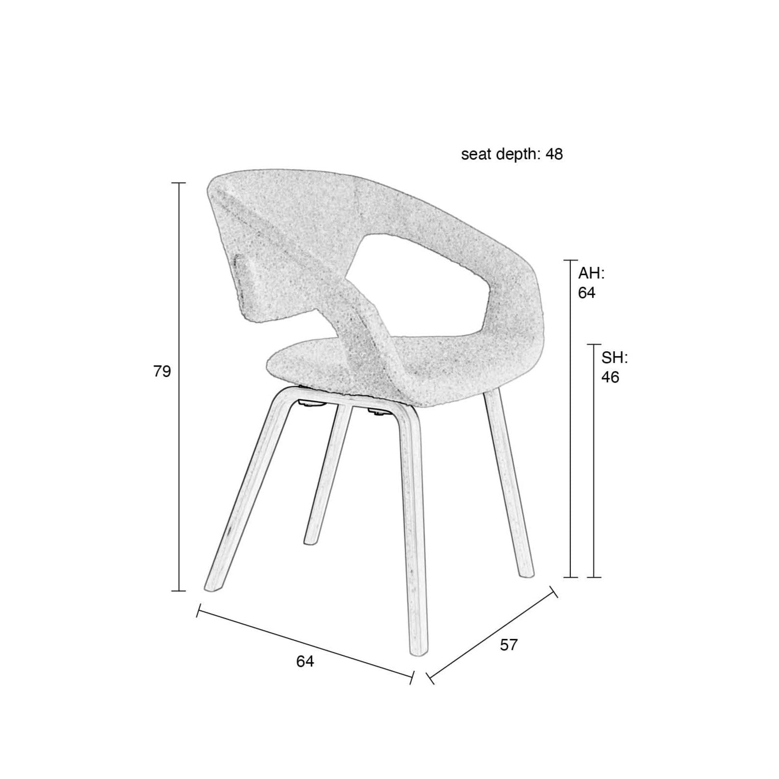 The seat with Bouclé upholstery provides a comfortable seat. The base is made of beech wood.