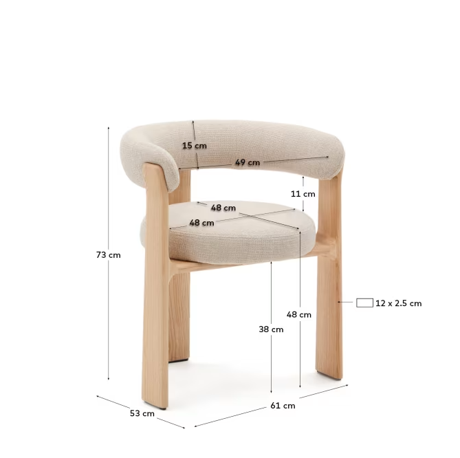 Chair It has legs made of solid ash wood with a natural finish, which emphasize its solidity and durability. Fabric and wood have ecological certificates, guaranteeing a responsible and sustainable approach to production. Granite is an excellent choice for people who value style, comfort and concern for the environment.