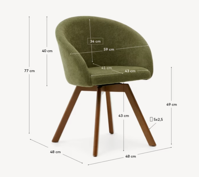 Legs chairs They are made of solid wood, which ensures solidity and stability of the structure. Their dark finish adds elegance and class to the furniture, which makes it perfectly blend with various interior styles. Internal design green chairs It is made of wood in E0 technology, which guarantees low formaldehyde emission. This is an ecological solution that leaves the environment cleaner and healthier.