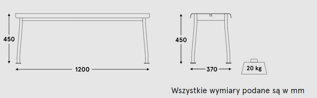 Pads on the legs prevent the furniture from collapsing on a soft surface. Matt finishing paint protects against external factors, and the minimalist design in harmonious colors allows you to easily fit the bench to the rest of the collection. Thanks to the height of 450 mm, it is ideal for coffee tables.
