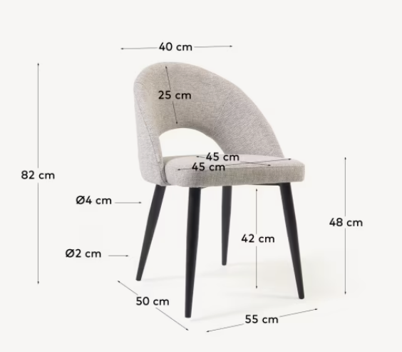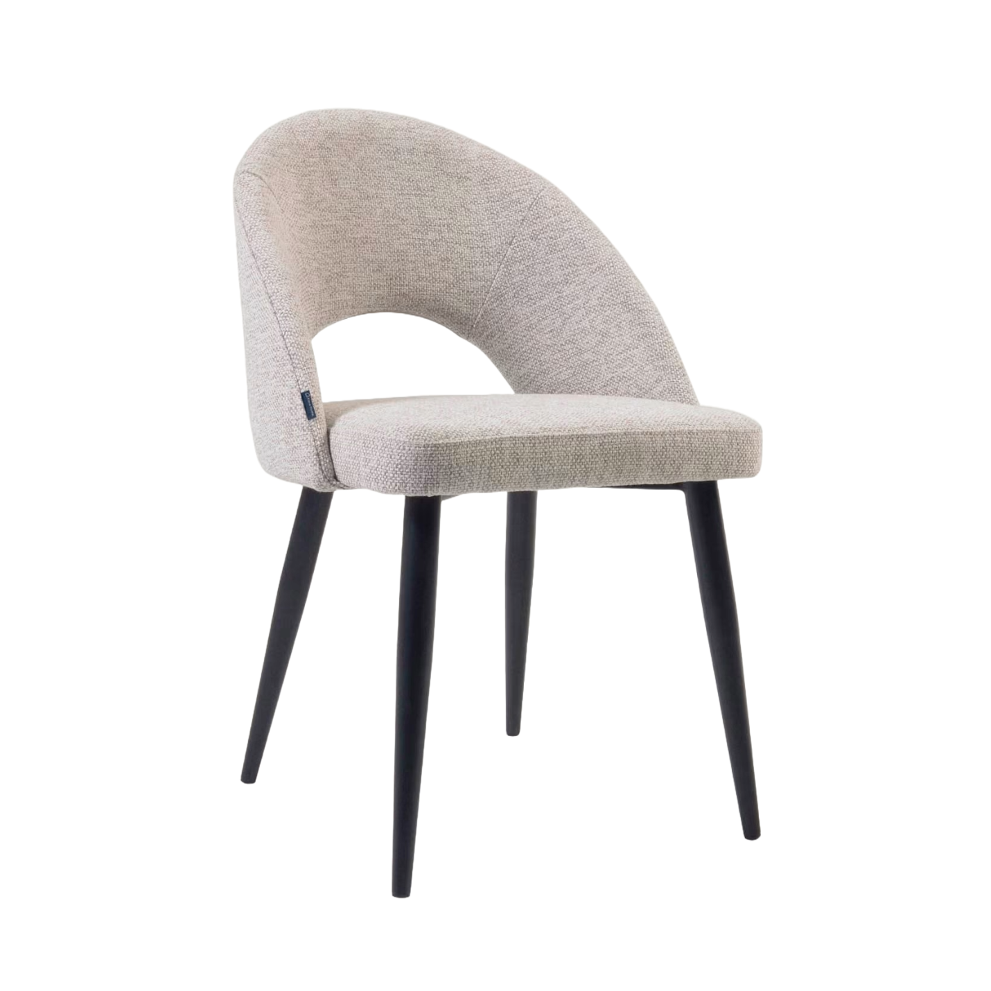 Chair Mael is a modern interpretation of the style of the 1950s, designed for everyday comfort and elegance. Ergonomic shape, high back and upholstery in beige color create a cozy seat space, ideal for large parties and daily meetings. Easy Clean finish provides high resistance to stains and ease of cleaning and maintenance, and steel legs with black powder painting care about stability and protect the floor.