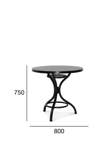 A round top 80 cm in diameter, made of MDF, is available in two thickness variants - 19 mm or 35 mm. The stable base is created by three elegantly bent legs, which add a classic character to the furniture.