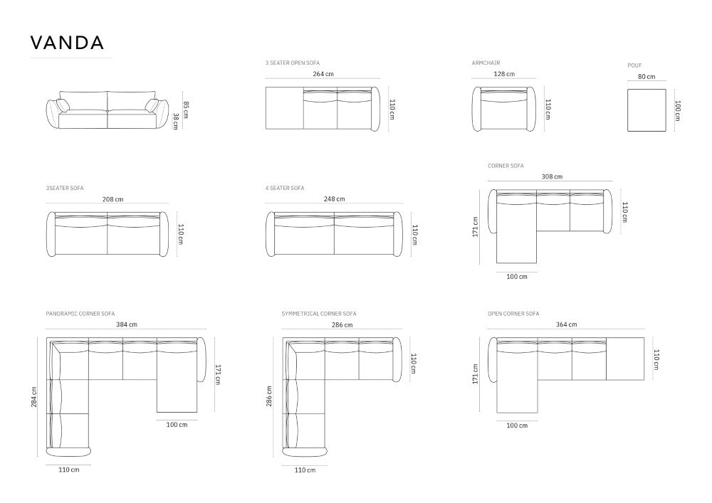 Narożnik panoramiczny aksamitny lewostronny VANDA beżowy Mazzini Sofas    Eye on Design