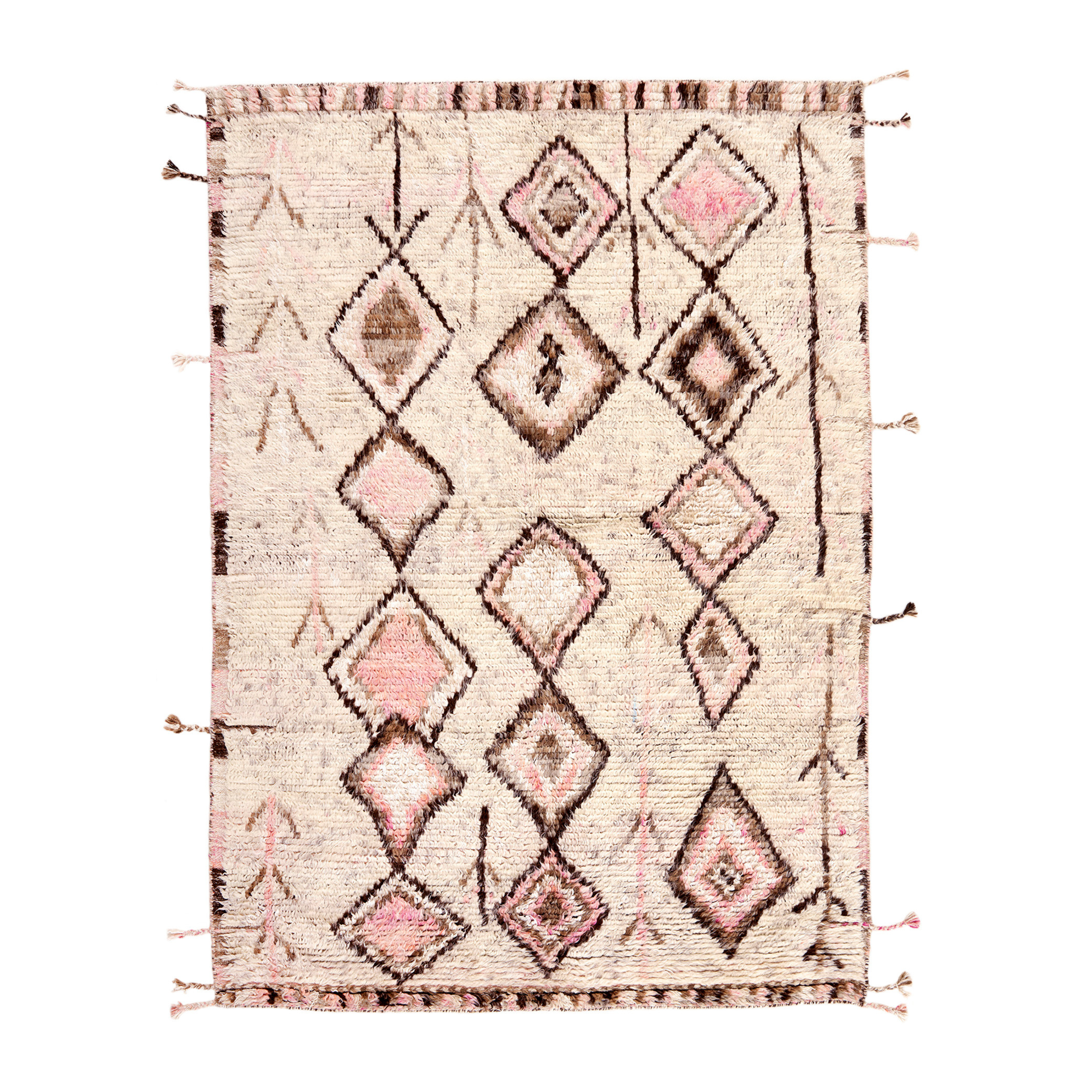 Dywan TRIBE jasnobeżowy z zielonym i różowym