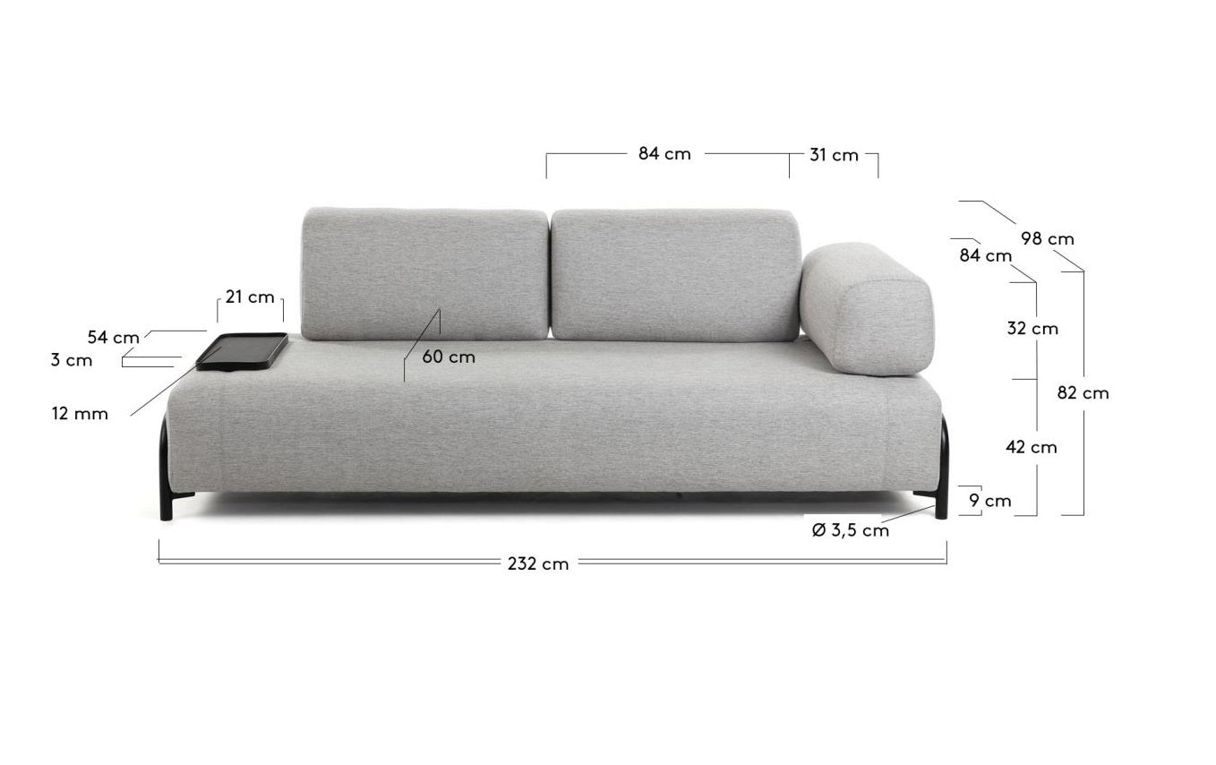 Sofa 3-osobowa modułowa z małą tacką COMPO beżowy La Forma    Eye on Design