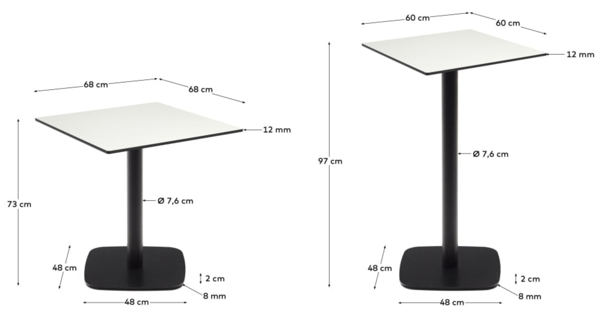 Table Dina with a black base and a white top is an elegant piece of furniture that adds a modern character to any room. Its square top in white and a metal base, painted in black, create a harmonious composition that attracts eyes with its minimalist design.