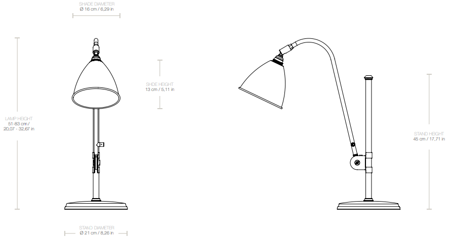 The BL1 table lamp is an iconic model designed by Robert Dudley Best in 1930. Its minimalist design, with clear references to the Bauhaus style, makes it a perfect fit for any office, bedroom, or living room. It’s no wonder Winston Churchill chose it for his desk – it combines elegance, functionality, and timeless form. With its adjustable height and rotating shade, the BL1 lamp provides optimal lighting for work or relaxation.