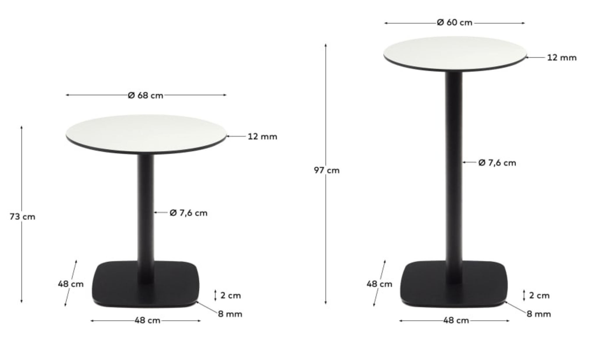 Table Dina with a black base and a white round top is an elegant piece of furniture that adds a modern character to any room. Its round white top and a metal base, painted in black, create a harmonious composition that catches the eye with its minimalist design.