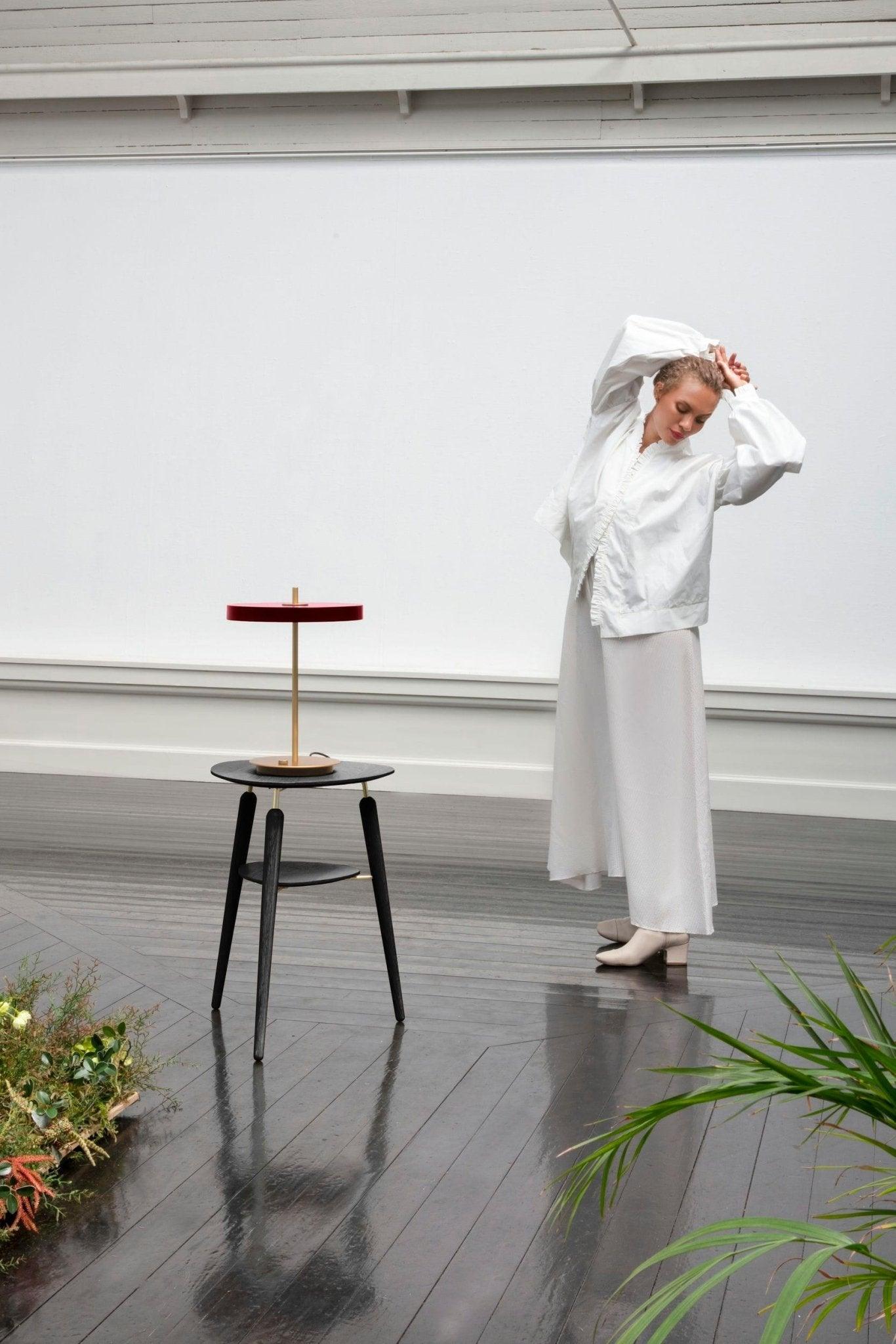 Table lamp Asteria Table is a unique element of decor, equipped with a built -in LED panel with a diffuser, which ensures gentle lighting of the room. The brass stem passing through the lamp adds elegance and solidity of the whole structure, giving it a compact look.